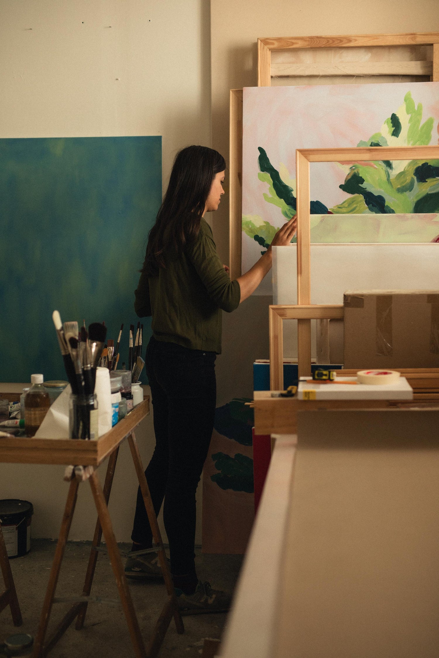 Trained at the Royal College of Art in London, Nina Elizabeth works with an intense passion for the visual elements of nature. Her works explore what lies hidden in the movements and colors of nature, and she seeks to let each painting radiate a form of vitality. Her studio in Copenhagen is the place where abstract and semi-abstract forms meet in a constant pursuit of the life force in nature.