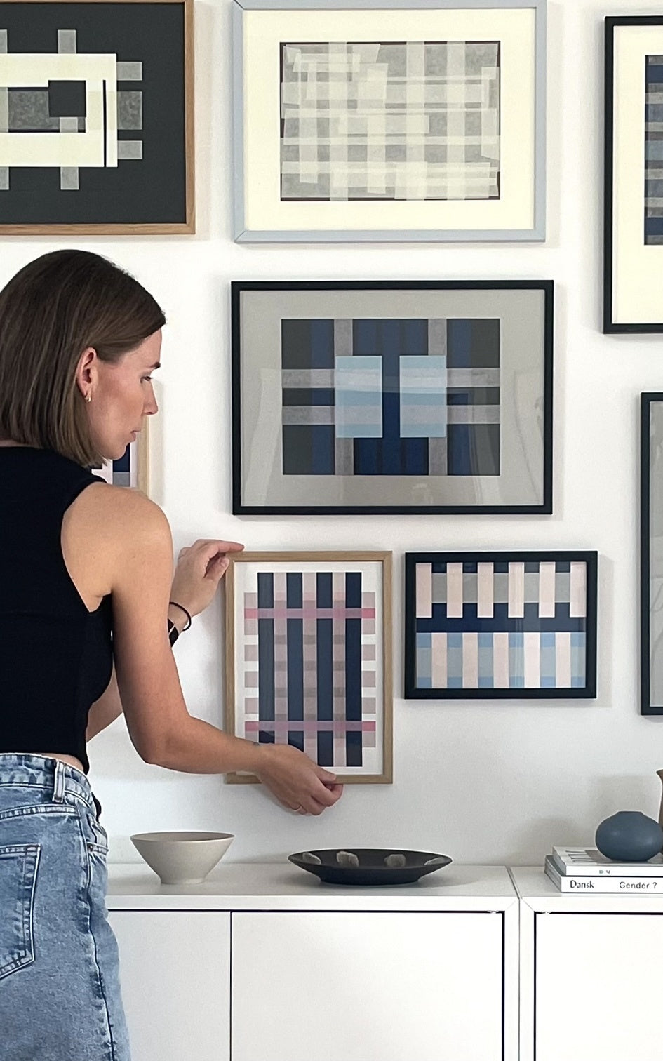 Louise Binnerup explores shapes, colors, and lines in her works and creates a graphic expression that highlights the calm and balanced. Her art is characterized by simple but strong shapes and a minimalist approach to colors, which adds a timeless, understated expression to any room. Her works are created to add life and color without taking over the decor.