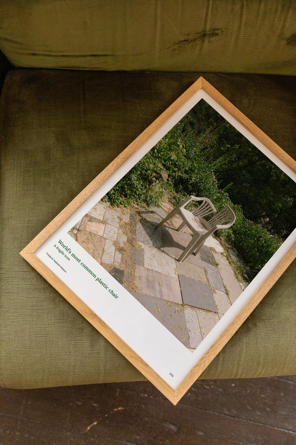 Our frames are made from high-quality materials and are available in solid oak, dark-stained oak, and black-painted pine. All frames come with real glass, while the largest sizes (70 × 100 cm and 100 × 140 cm) feature 2 mm acrylic glass, which looks like glass but is lighter and more shatter-resistant (durable).