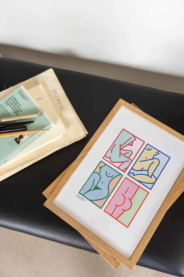 Kunstplakaten: “A Study of Postures” af kunstneren Humam Abou Asali er en illustreret plakat der er eksklusivt lavet til Peléton. Det har været betydningsfuldt for Humam Abou Asali, at plakaten står til fri fortolkning.
