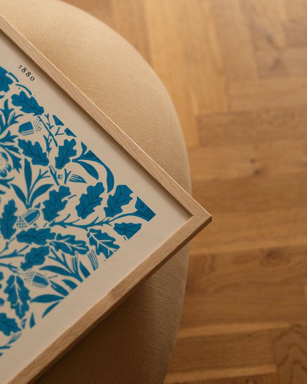 Our frames are made from high-quality materials and are available in solid oak, dark-stained oak, and black-painted pine. All frames come with real glass, while the largest sizes (70 × 100 cm and 100 × 140 cm) feature 2 mm acrylic glass, which looks like glass but is lighter and more shatter-resistant (durable).