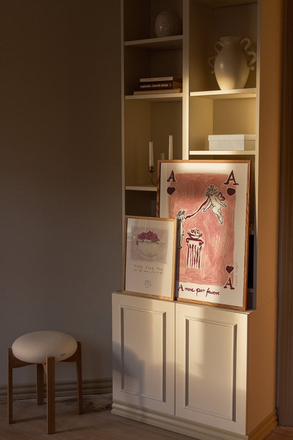 Cathrin Coralus kunstplakat "Amore per favore" er en del af en farverig kollektion skabt eksklusivt til Peléton. Motiverne hylder legende kompositioner, stærke farver og Cathrins finurlige billedunivers, hvor sentimentale temaer og en kunstnerisk lethed går hånd i hånd.