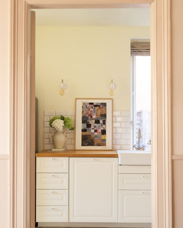 The art poster: “Ascent of a Little Town” by the artist Paul Klee is a painted poster recreated by Peléton. This poster is part of Peléton's vintage collection with museum layout. The art poster is produced on quality paper, with long durability, high breathability, and detailed color reproduction.