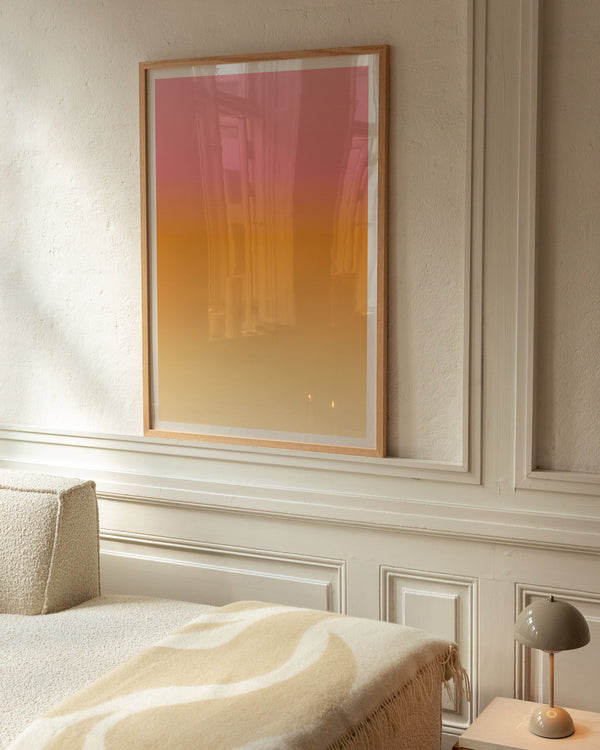 The art poster: “Atmosphere 01” by the artists Mie & Him is a graphically illustrated poster curated by Peléton. It has been important to them that the poster is open to interpretation.