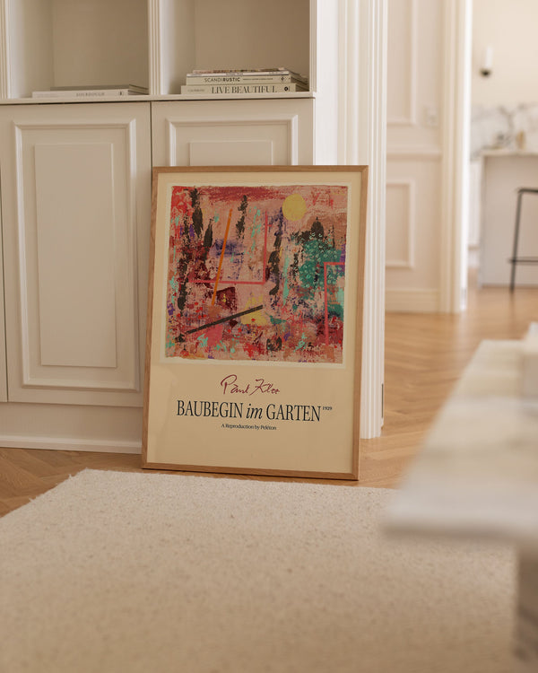 The art print: “baubegin im garten” by the artist Paul Klee is an abstract illustrated poster, recreated by Peléton. This poster series with Paul Klee's colorful and abstract art prints is characterized by his inventive and unique techniques. This poster is part of Peléton's vintage collection with museum layout. The art print is produced on quality paper, with long durability, high opacity, and detailed color reproduction.