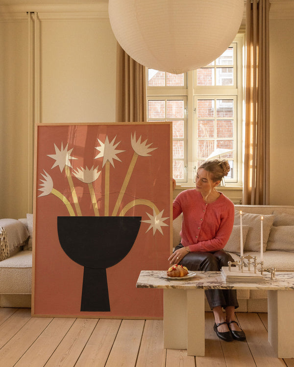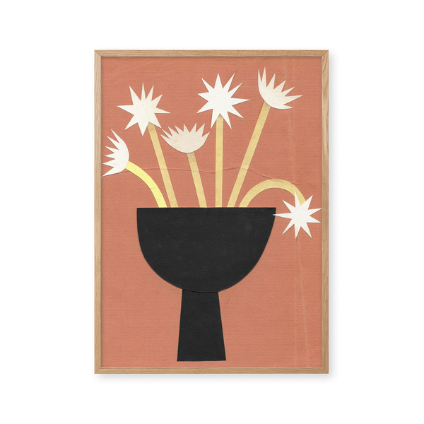 The art poster: “Black Bowl of Star Shaped Flowers” by the artist Lauri Hopkins is an illustrated poster exclusively made for Peléton. It has been significant for Lauri Hopkins that the poster is open to interpretation.