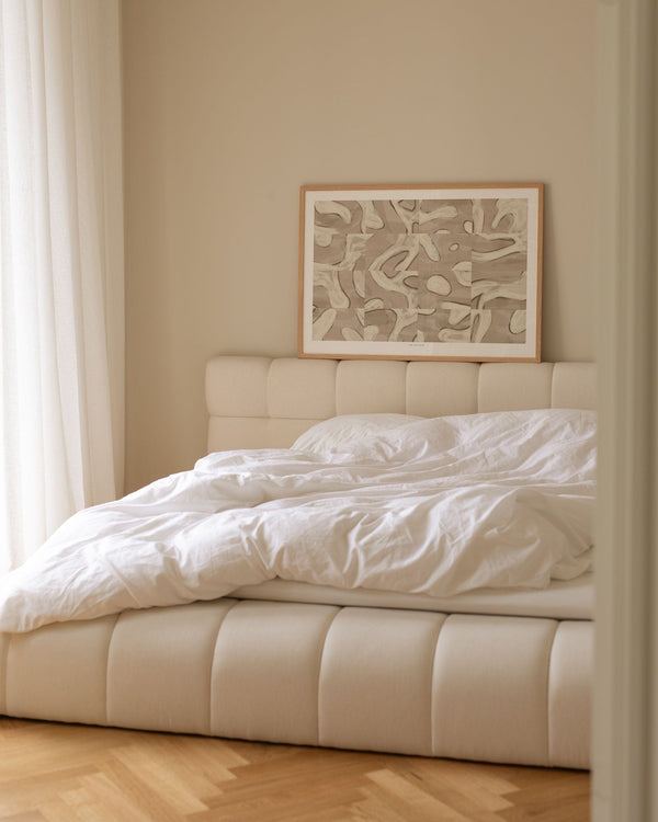 The Frames in oak are made of solid oak. The dark variant is stained to achieve a deep, warm tone, while the black Frame is made of black-painted pine with the same elegant profile.
