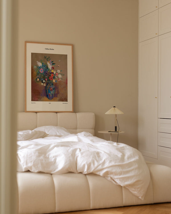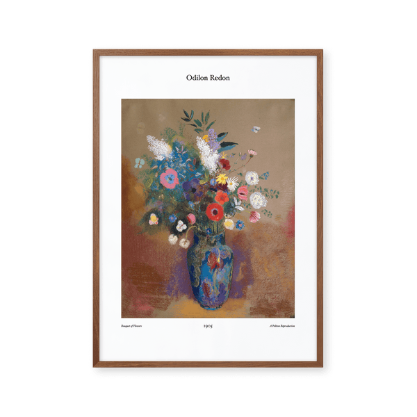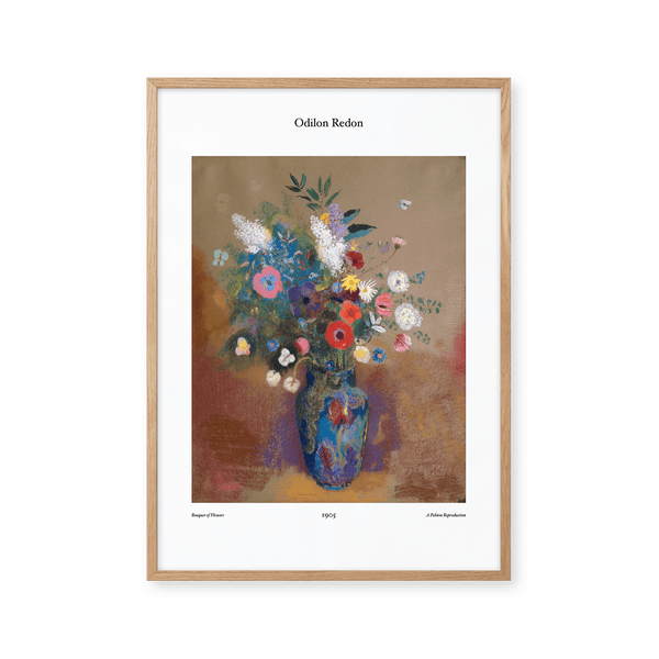 The art print: "Bouquet of Flowers" by the artist Odilion Redon is a painted print, recreated by Peléton. This print series with Odilion Redon's art prints is characterized by his detailed paintings of colorful flowers. This print is part of Peleton's vintage collection with museum layout. The art print is produced on quality paper with long durability, high opacity, and detailed color reproduction.