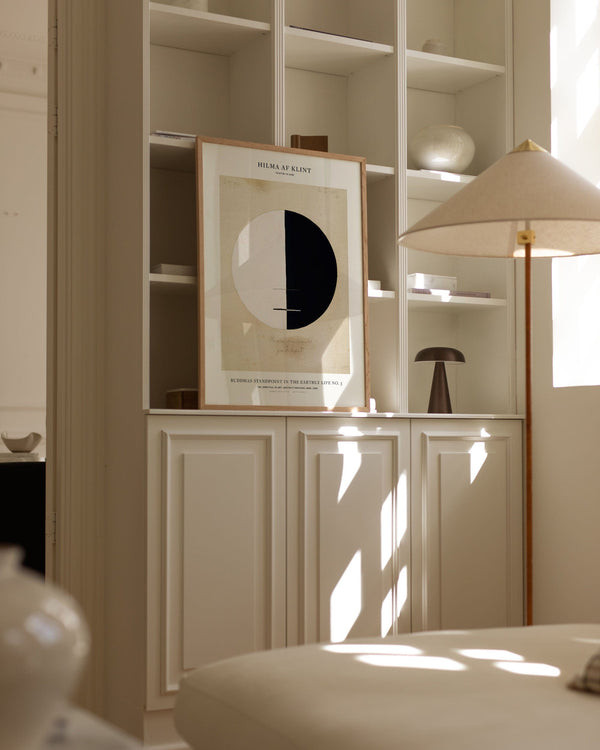 The art print: “Buddhas Standpoint in the Earthly Life No. 3” by the artist Hilma af Klint is an abstract illustrated print, recreated by Peléton. This print series with Hilma af Klint's unique and abstract art prints is characterized by her inventive and personal expression. This print is part of Peléton's vintage collection with museum layout. The art print is produced on quality paper, with long durability, high opacity, and detailed color reproduction.