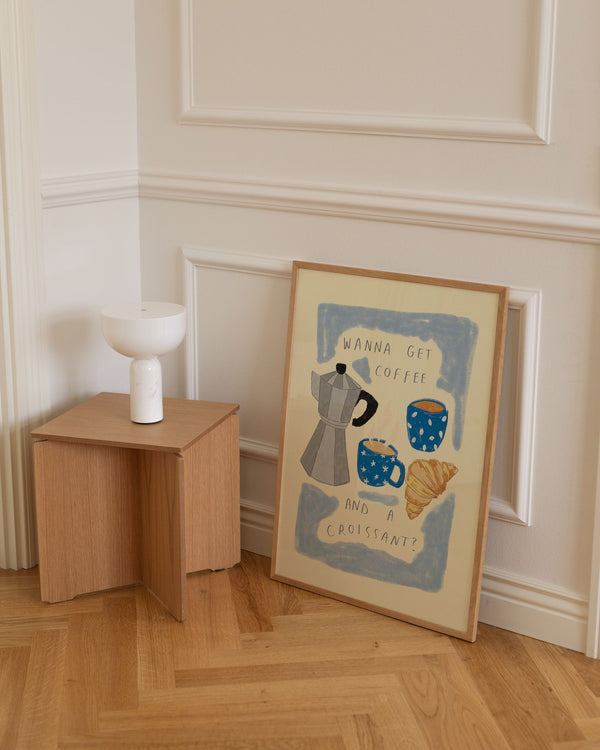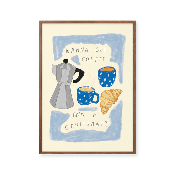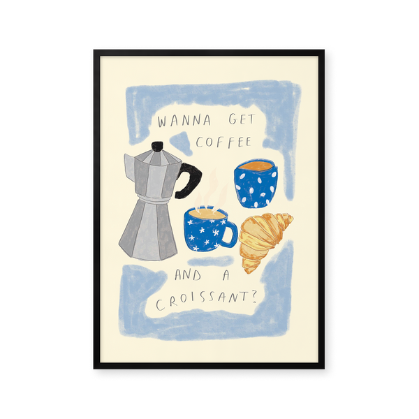 The art poster: “Coffee and Croissant” by the artist Lauren Emmett is an illustrated poster curated by Peléton. It has been meaningful to her that the poster is open to interpretation.