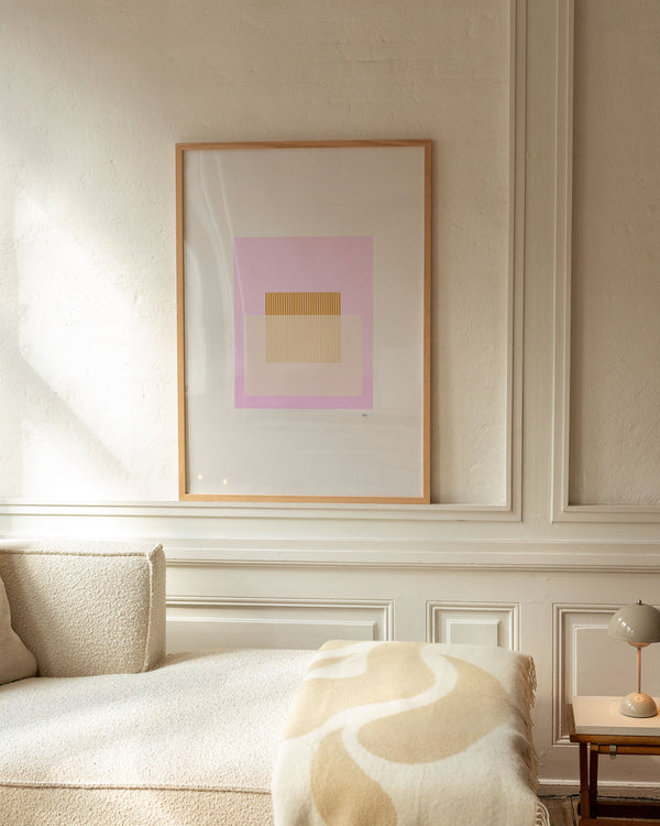 The art print: “Composition 02” by the artists Mie & Him is a graphically illustrated poster, exclusively made for Peléton. It has been important to them that the poster is open to interpretation. This work is part of a collection of exclusive art prints that express minimalism and simplicity.
