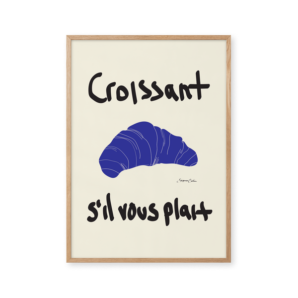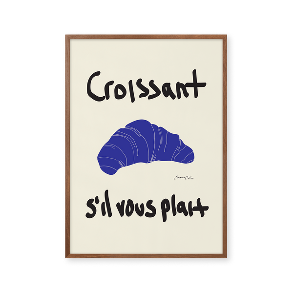 The art poster: “Croissant Sil Vous Plait" by the artist Stephie Cardona is a graphically illustrated poster curated by Peléton. It has been meaningful to her that the poster is open to interpretation.