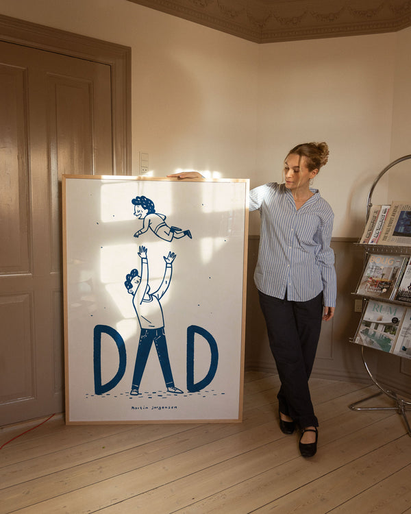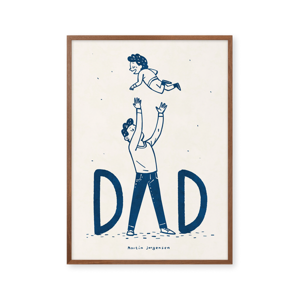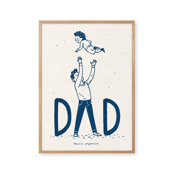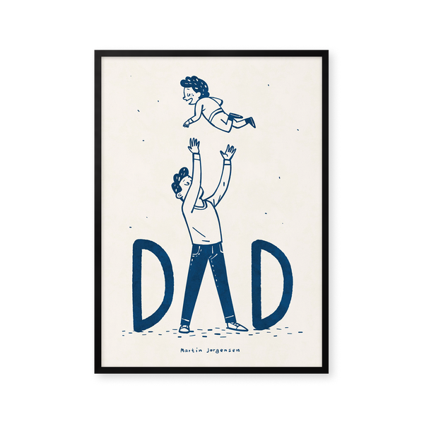 The art poster: “Dad flying” by the artist Martin Jørgensen is an illustrated poster curated by Peléton. It has been significant for Martin Jørgensen says the poster is open to interpretation.