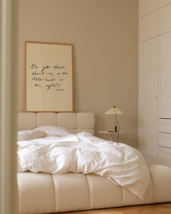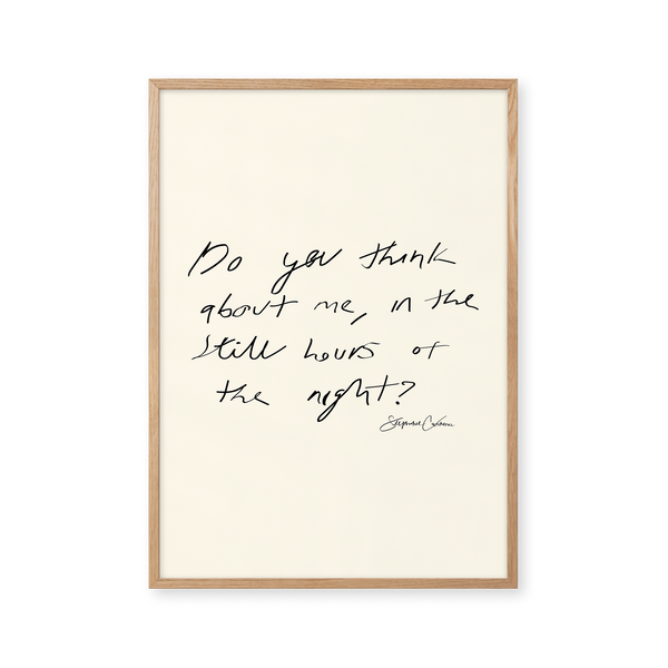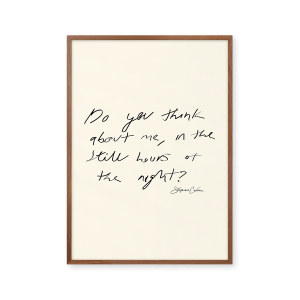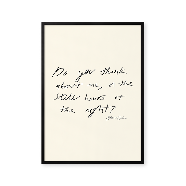 The art poster: “Do You Think About Me" by the artist Stephie Cardona is a graphically illustrated poster curated by Peléton. It has been meaningful to her that the poster is open to interpretation.
