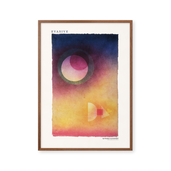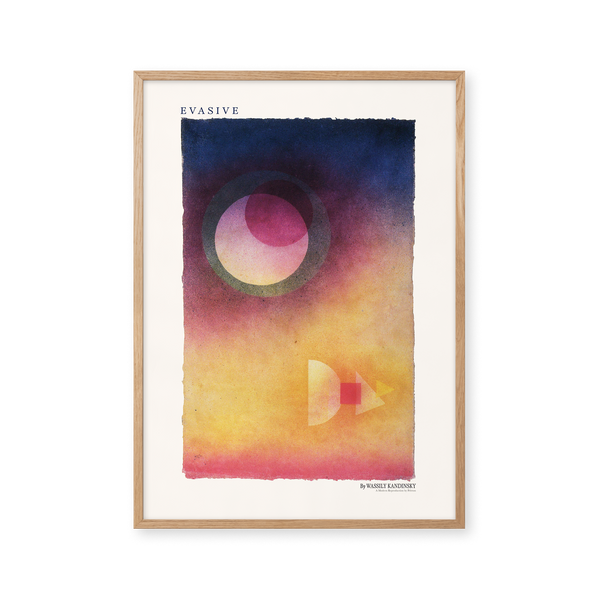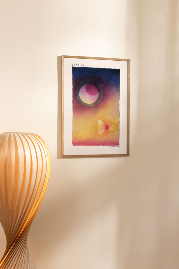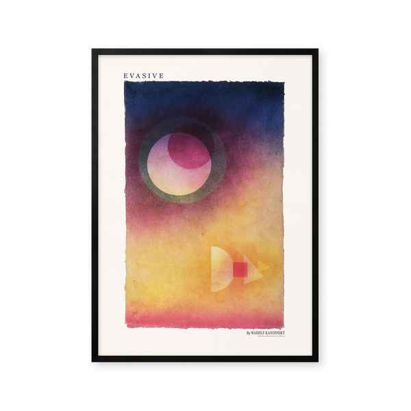 Art poster: “Evasive” by the artist Wassily Kandinsky is an abstract illustrated poster, recreated by Peléton. This poster is part of Peléton's vintage collection with museum layout. The art poster is produced on quality paper, with long durability, high opacity, and detailed color reproduction.