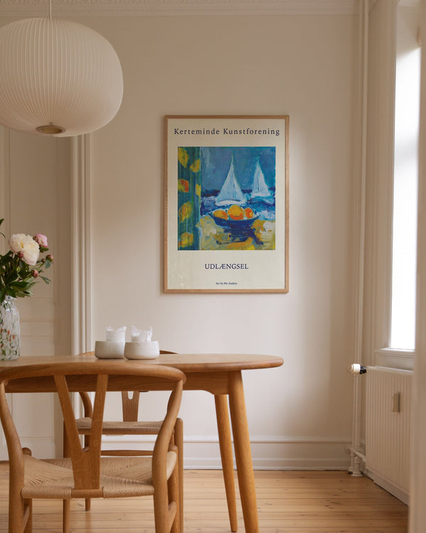 The art poster: “Udlængsel” by the artist Per Anders is a painted and graphic poster made exclusively for Peléton. This is a high-quality reproduction of the original artwork with a colorful museum layout. It has been important for Per Anders that the poster is open to interpretation.