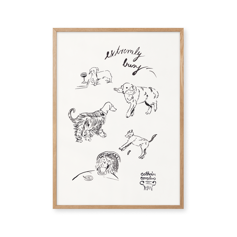 Cathrin Coralus kunstplakat "Extremely Busy" er en del af en farverig kollektion skabt eksklusivt til Peléton. Motiverne hylder legende kompositioner, stærke farver og Cathrins finurlige billedunivers, hvor sentimentale temaer og en kunstnerisk lethed går hånd i hånd.