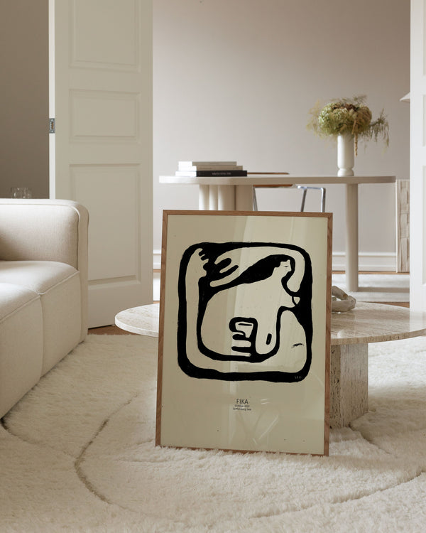 The art poster: “Fika” by the artist Sandra Blomén Maschinsky is a graphically illustrated poster, exclusively made for Peléton. It has been significant for her that the poster is open to interpretation.