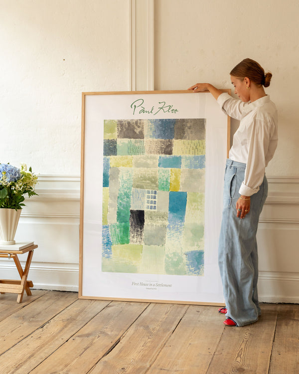 The art poster: “First House in a Settlement” by the artist Henri Matisse is a painted poster recreated by Peléton. This poster is part of Peléton's vintage collection with museum layout. The art poster is produced on quality paper, with long durability, high opacity, and detailed color reproduction.