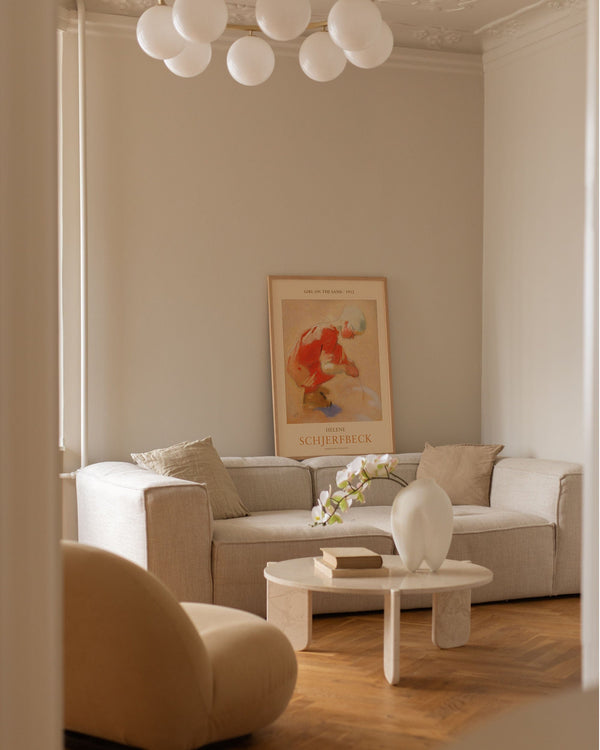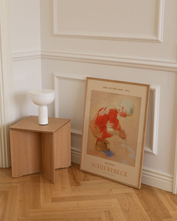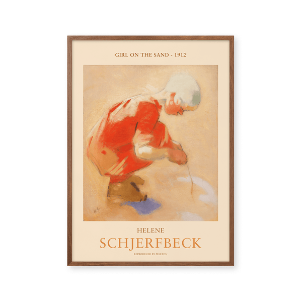 The art print: “Girl on the sand” by the artist Helene Schjerfbeck is a painted artwork, recreated as a poster by Peléton. This poster series with Helene Schjerfbeck colorful art prints, is characterized by her portraits. This poster is part of Peléton's vintage collection with museum layout. The art print is produced on quality paper, with long durability, high opacity, and detailed color reproduction.
