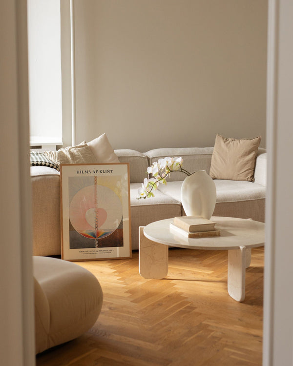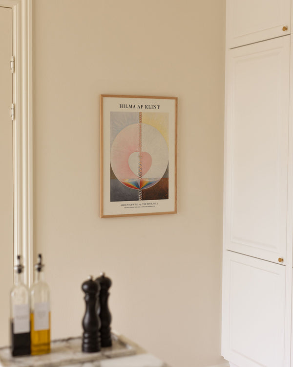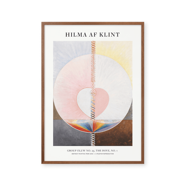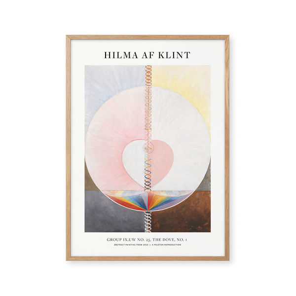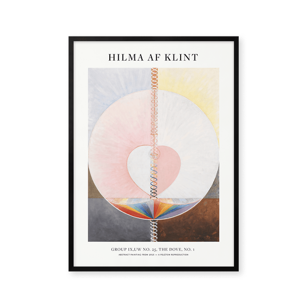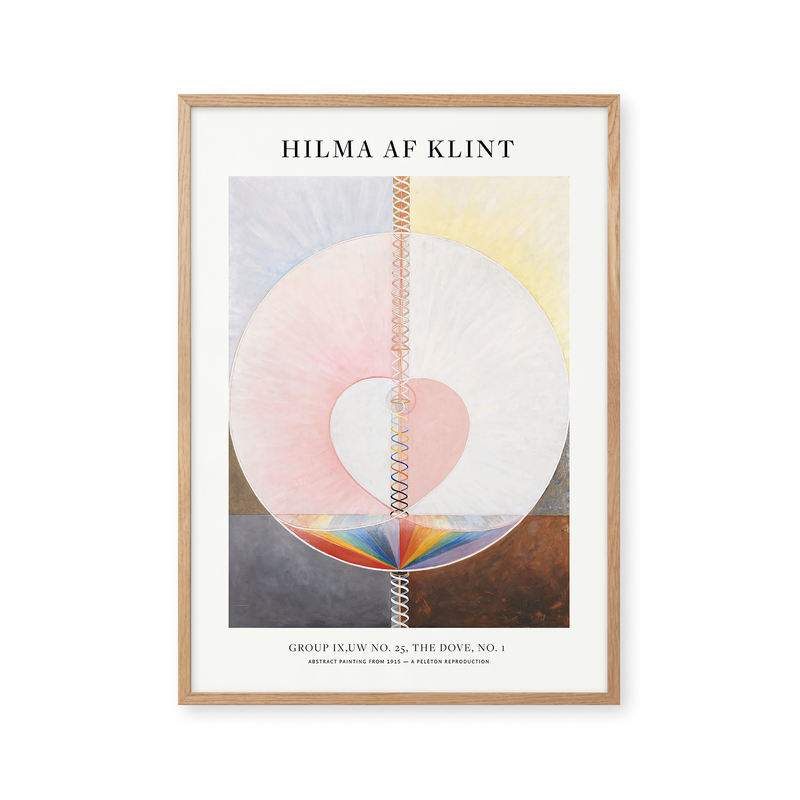 The art print: “Group IX,UW No. 25, The Dove, No. 1” by the artist Hilma af Klint is an abstract illustrated print, recreated by Peléton. This print series with Hilma af Klint's unique and abstract art prints is characterized by her inventive and personal expression. This print is part of Peléton's vintage collection with museum layout. The art print is produced on quality paper, with long durability, high opacity, and detailed color reproduction.