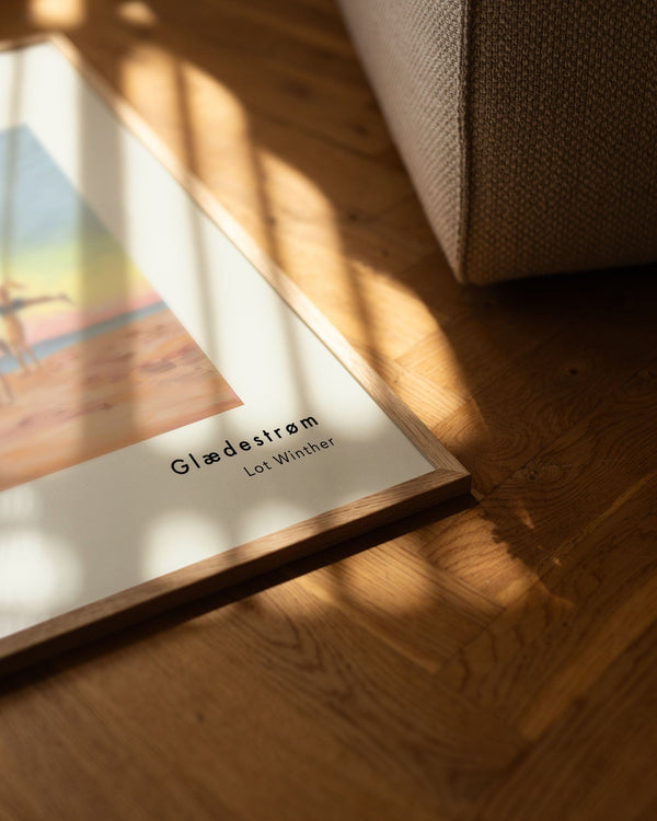 Our frames are made from high-quality materials and are available in solid oak, dark-stained oak, and black-painted pine. All frames come with genuine glass, while the largest sizes (70 × 100 cm and 100 × 140 cm) feature 2 mm acrylic glass that looks like glass but is lighter and more shatter-resistant.