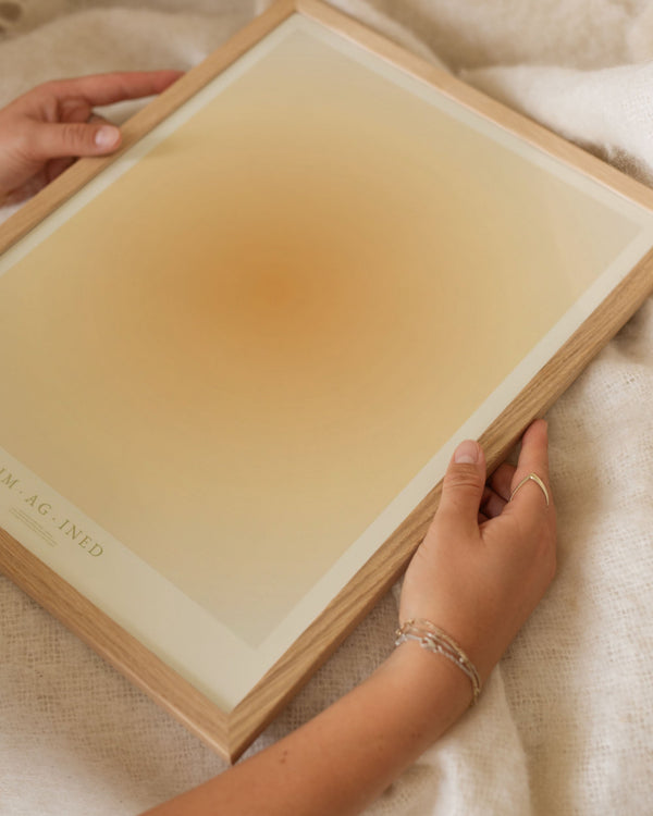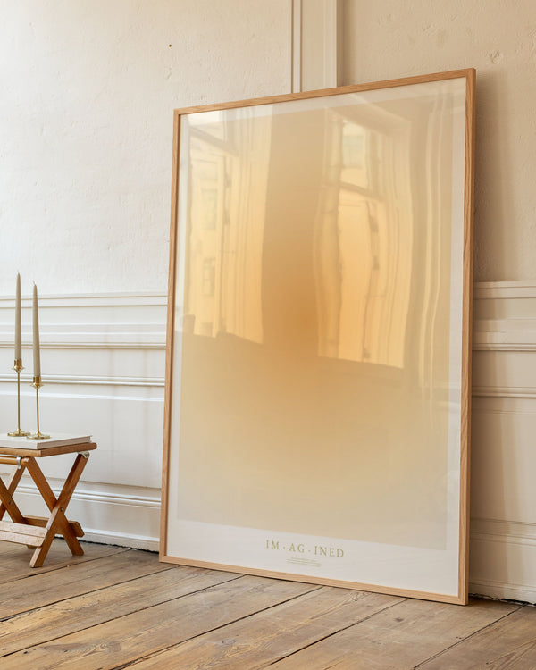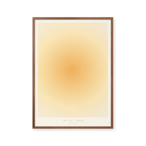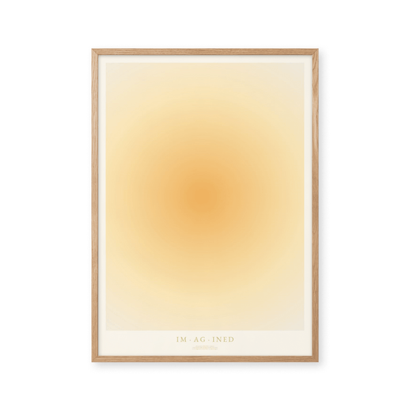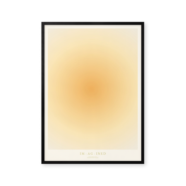 The art poster: "IMAGINED" by artists Mie & Him is a graphically illustrated poster curated by Peléton. It has been important to them that the poster is open to interpretation. The color yellow symbolizes happiness and imagination - a cheerful color that stimulates enthusiasm and confidence. This work is part of a collection of independent words and their lexical definitions.