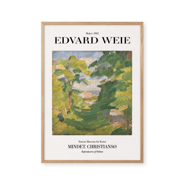 The art print: "Mindet. Christiansø" by the artist Edvard Weie is a painted print, recreated by Peléton. This print series with Edvard Weie's art prints is characterized by his use of colors and large brushstrokes. This print is part of Peleton's vintage collection with museum layout. The art print is produced on quality paper with long durability, high opacity, and detailed color reproduction.