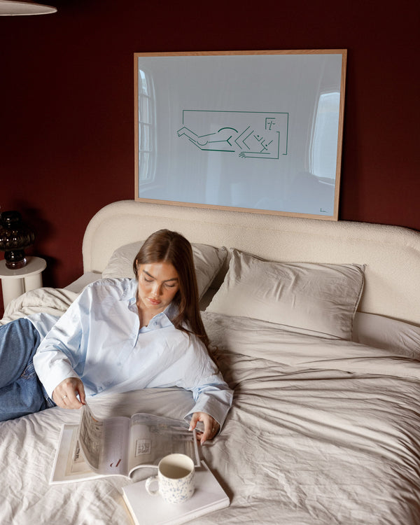The art poster: “Napping” by the artist Humam Abou Asali is an illustrated poster exclusively made for Peléton. It has been important for Humam Abou Asali that the poster is open to interpretation.