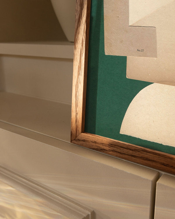 Our frames are made from high-quality materials and are available in solid oak, dark-stained oak, and black-painted pine. All frames come with real glass, while the largest sizes (70 × 100 cm and 100 × 140 cm) feature 2 mm acrylic glass, which looks like glass but is lighter and more shatter-resistant (durable).