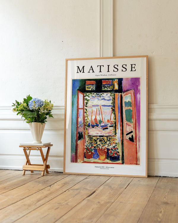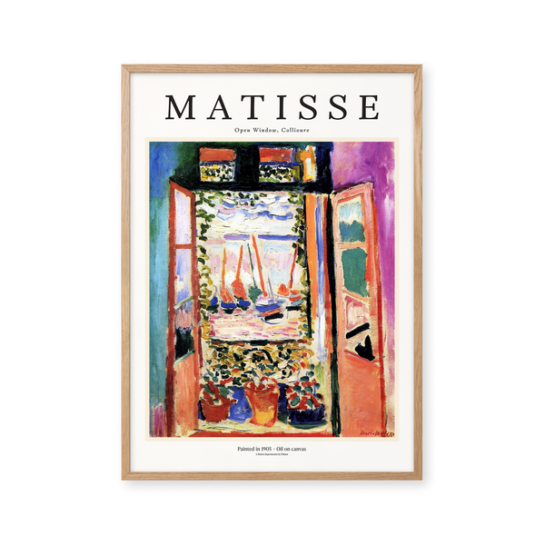 The art poster: “Open Window Collioure” by the artist Henri Matisse is a painted poster recreated by Peléton. This poster is part of Peléton's vintage collection with a museum layout. The art poster is produced on quality paper, with long durability, high opacity, and detailed color reproduction.