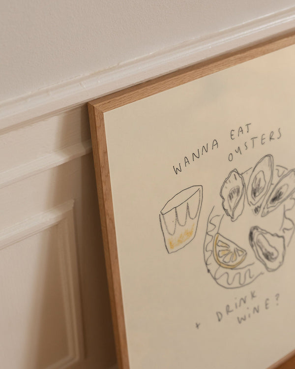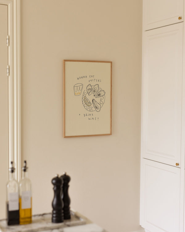 The art poster: “Oysters” by the artist Lauren Emmett is an illustrated poster curated by Peléton. It has been significant for her that the poster is open to interpretation.