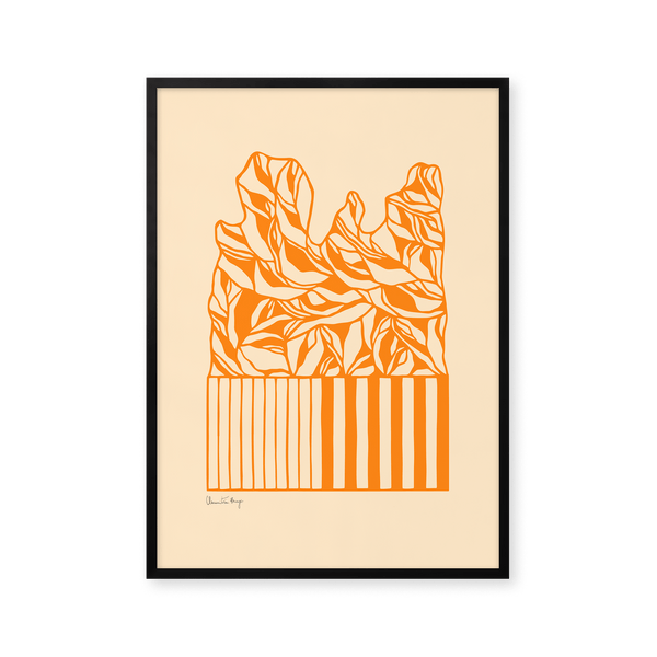 The art poster: “Papercut 13 - Orange” by the artist Little Detroit is an illustrated poster made exclusively for Peléton. It has been significant for Little Detroit that the poster is open to interpretation.