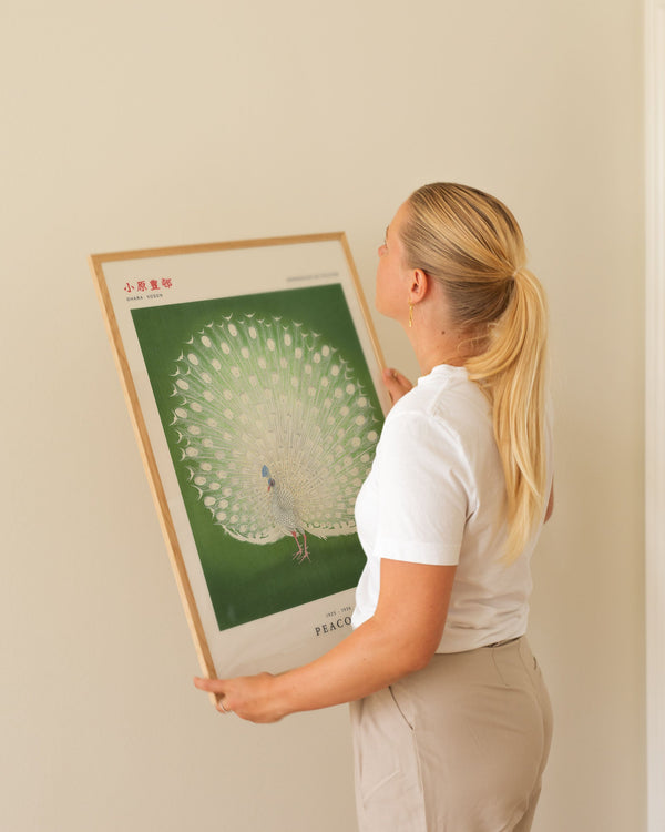 Our frames are made from high-quality materials and are available in solid oak, dark-stained oak, and black-painted pine. All frames come with real glass, while the largest sizes (70 × 100 cm and 100 × 140 cm) feature 2 mm acrylic glass, which looks like glass but is lighter and more shatter-resistant (durable).