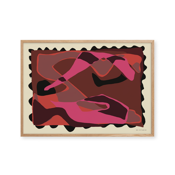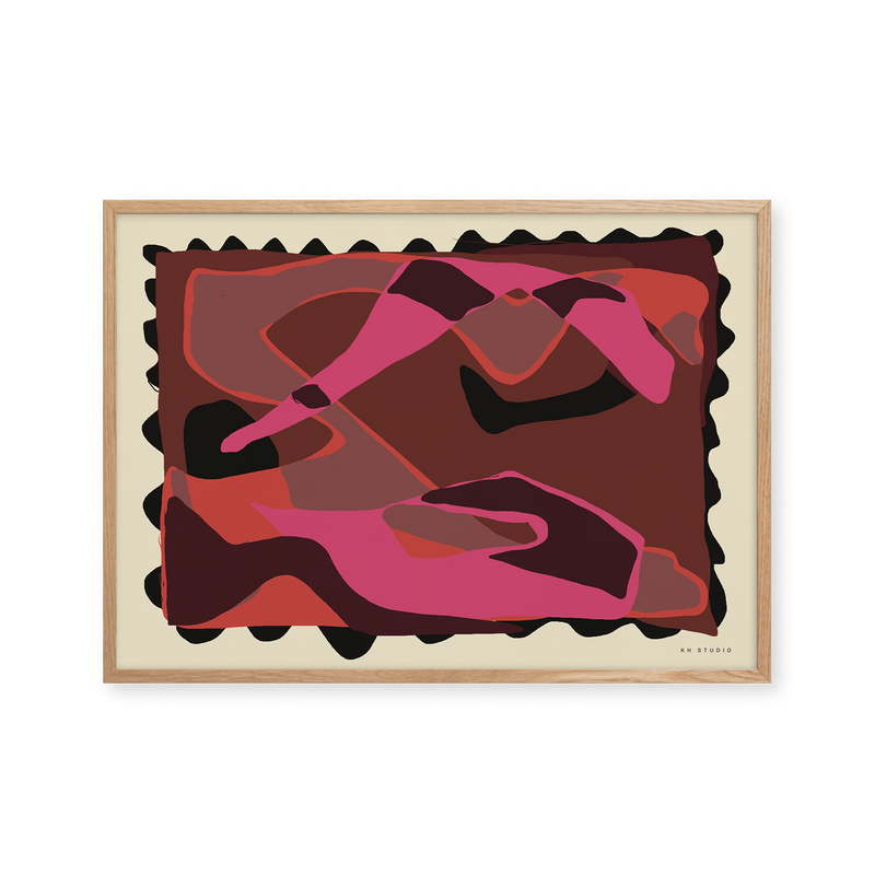 Karla Hymans kunstplakat "Picking Cherries" er en del af en farverig kollektion udviklet specielt til Peléton, og som hylder legende kompositioner og stærke farvevalg. Hendes værker er præget af en enkel og abstrakt stil, hvor form og farver spiller tæt sammen.