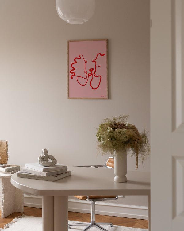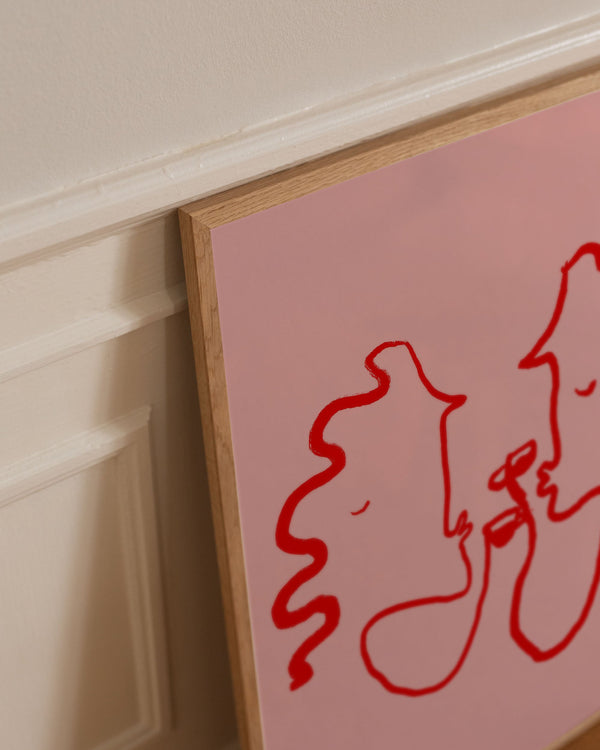 The art poster "PINK LOVERS" by the artist Ruby Hughes is an illustrated poster curated for Peléton. The art poster is produced on quality paper, with long durability and detailed color reproduction.
