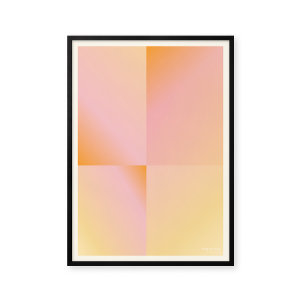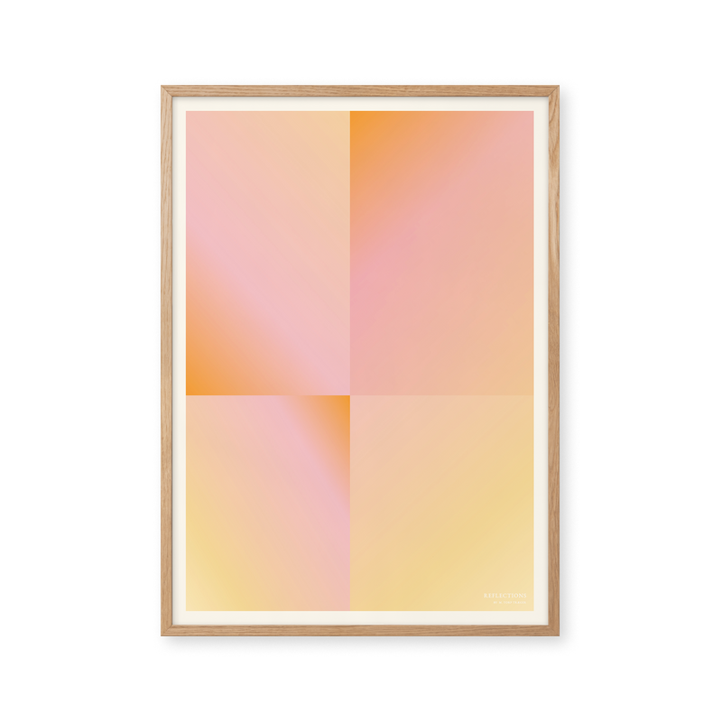 The art poster: “Reflections 02” by the artists Mie & Him is a graphically illustrated poster curated by Peléton. It has been important to them that the poster is open to interpretation.