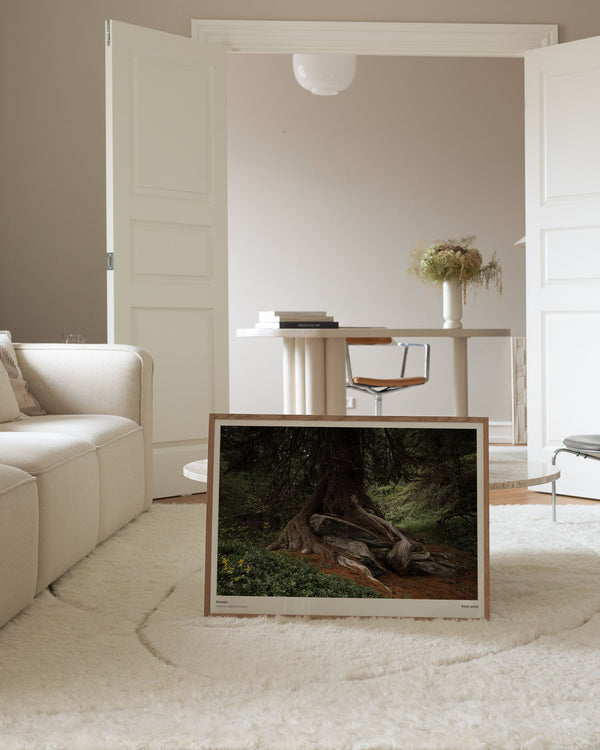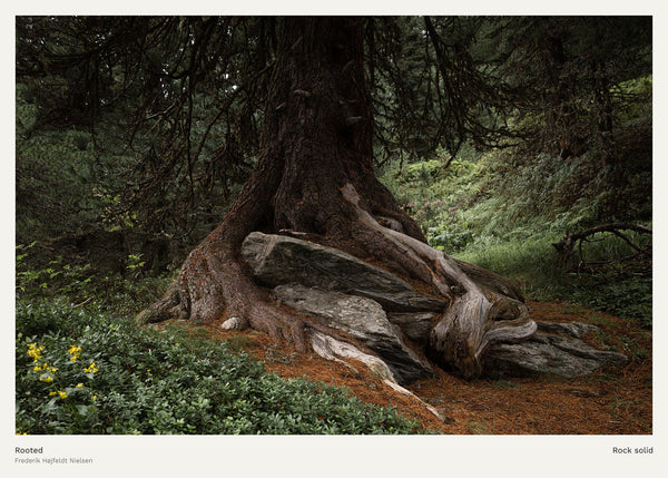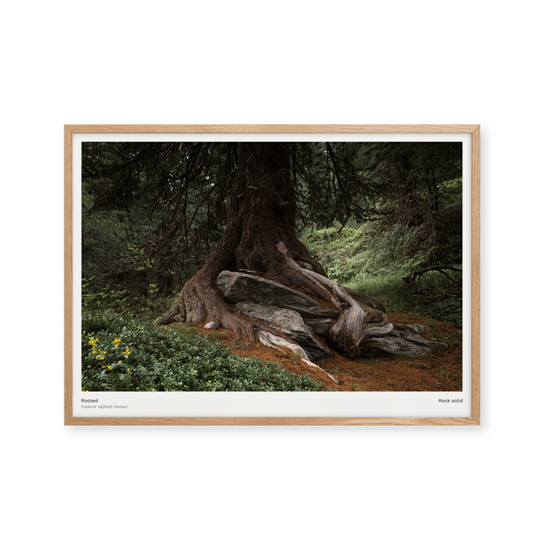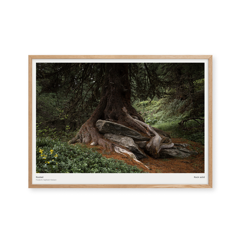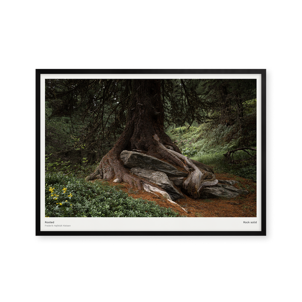 The art print: “Rooted, Rock Solid” by the artists Frederik Højfeldt is a graphically illustrated poster exclusively made for Peléton. It has been important to them that the poster is open to interpretation. This work is part of a collection of exclusive art prints that express minimalism and simplicity.