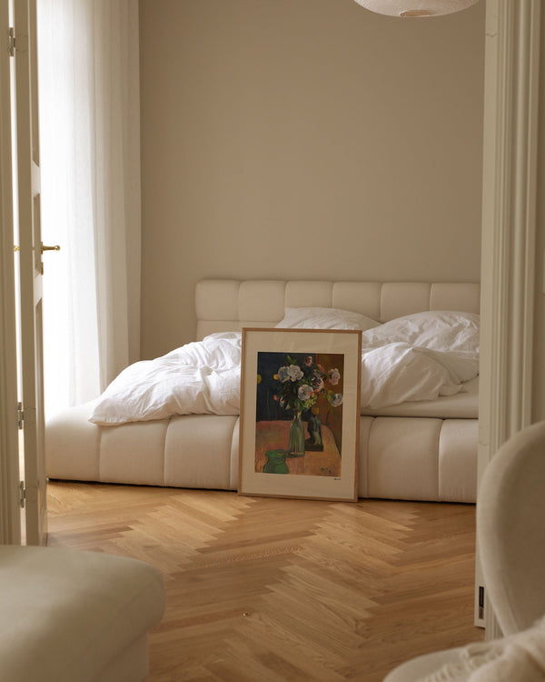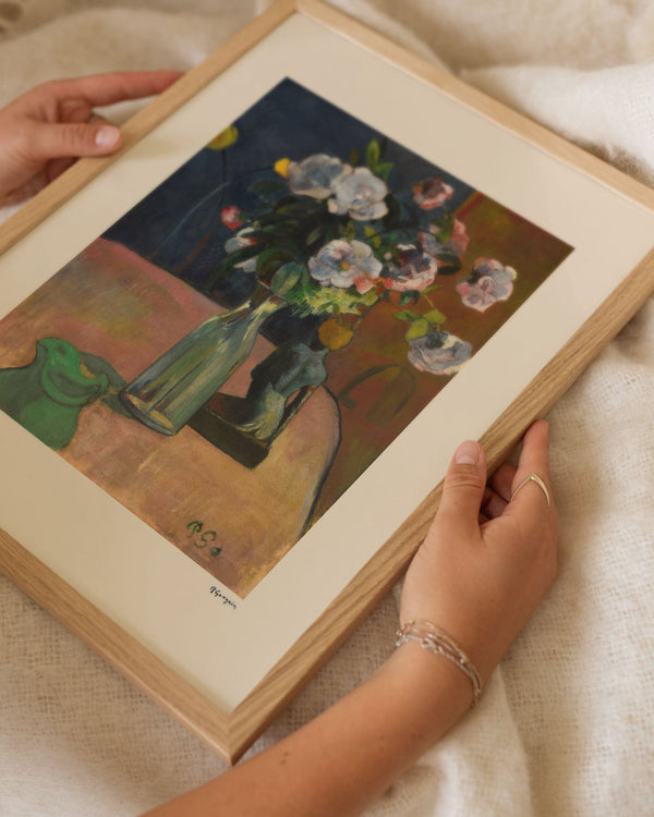 The art print: “Roses et statuette” by the artist Paul Gauguin is a painted poster recreated by Peléton. This poster series with Paul Gauguin's art prints is characterized by his experimental use of colors and artistic style. This poster is part of Peléton's vintage collection with museum layout. The art print is produced on quality paper, with long durability, high opacity, and detailed color reproduction.