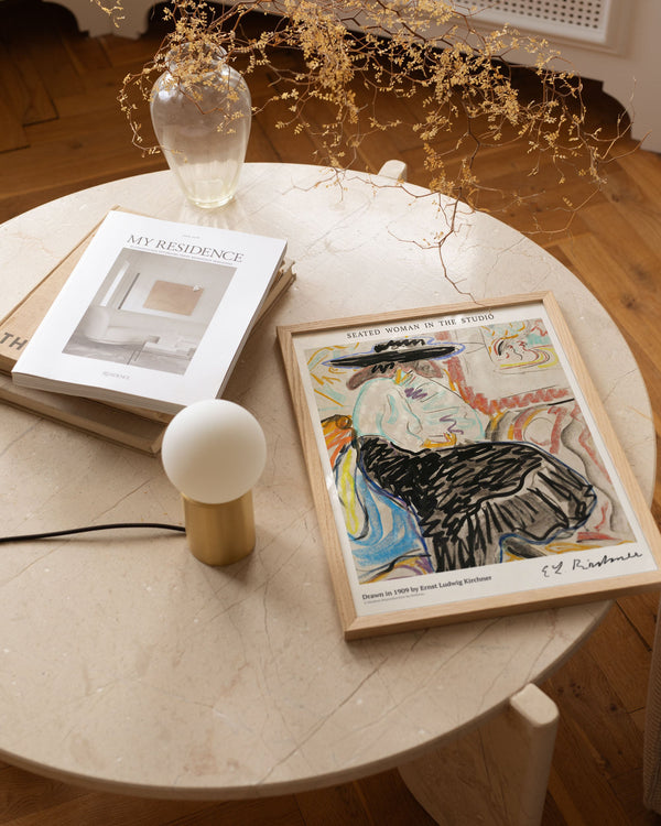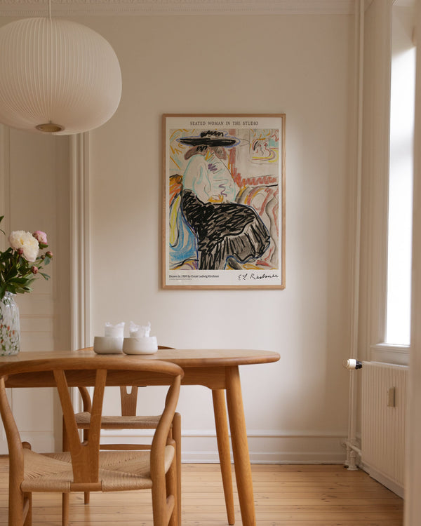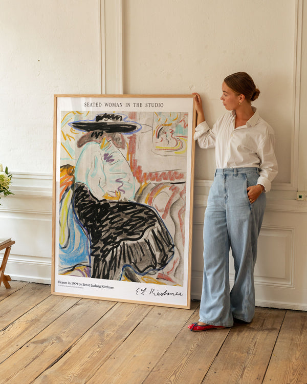 The art poster: “Seated Woman in the Studio” by the artist Mikuláš Galand is an abstract illustrated poster, recreated by Peléton. This poster is part of Peléton's vintage collection with museum layout. The art poster is produced on quality paper, with long durability, high opacity, and detailed color reproduction.