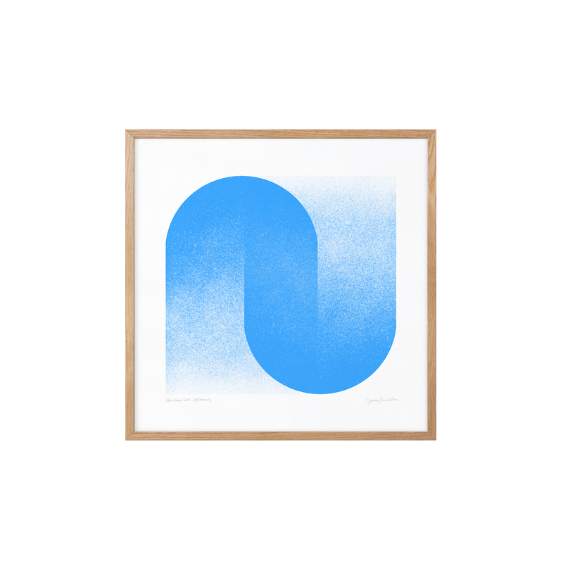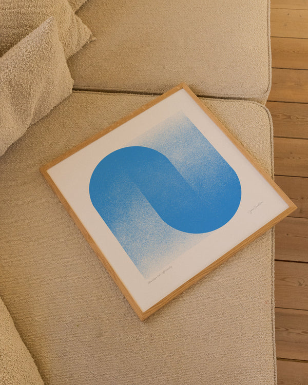 The art print: “Soft Geometry: This Way and That, Sky” by the artists Jessica Pundstone is a graphically illustrated poster, exclusively made for Peléton. It has been important to them that the poster is open to interpretation. This work is part of a collection of exclusive art prints that express minimalism and simplicity.