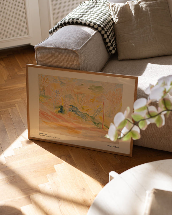 The art poster: “Summer” by the artist Nina Elizabeth is a painted poster curated by Peléton. The poster by Nina Elizabeth is open to interpretation.