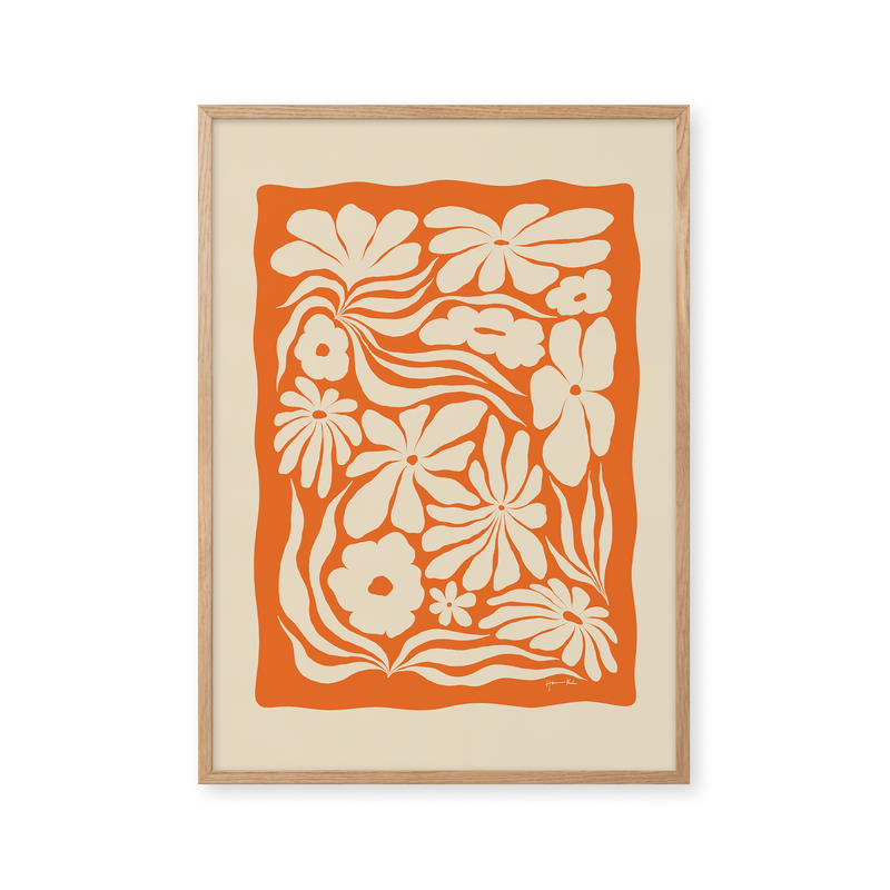 The art print: “Sunset garden” by the artists Hanna KL is a graphically illustrated poster exclusively made for Peléton. It has been meaningful to them that the poster is open to interpretation. This work is part of a collection of exclusive art prints that express minimalism and simplicity.