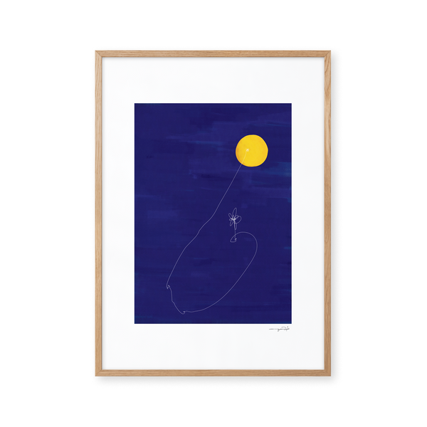 The art print: “Take Me To The Moon” by artists Mie & Him is a graphically illustrated poster exclusively made for Peléton. It has been important to them that the poster is open to interpretation. This work is part of a collection of exclusive art prints that express minimalism and simplicity.