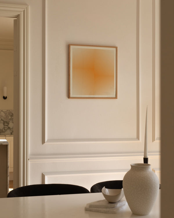 The art print: “Tangerine” by the artists Mie & Him is a graphically illustrated poster, exclusively made for Peléton. It has been important to them that the poster is open to interpretation. This work is part of a collection of exclusive art prints that express minimalism and simplicity.