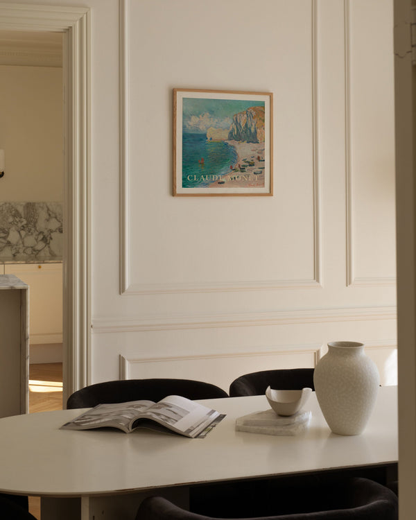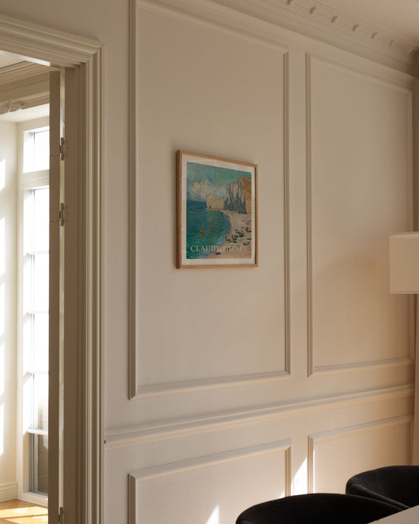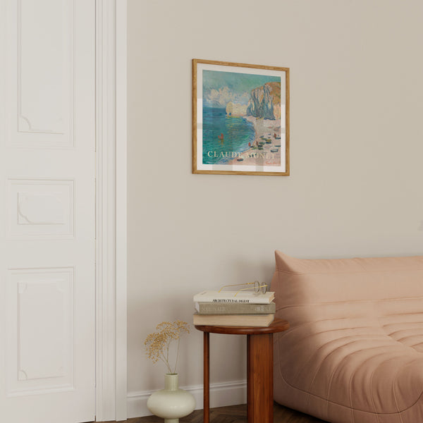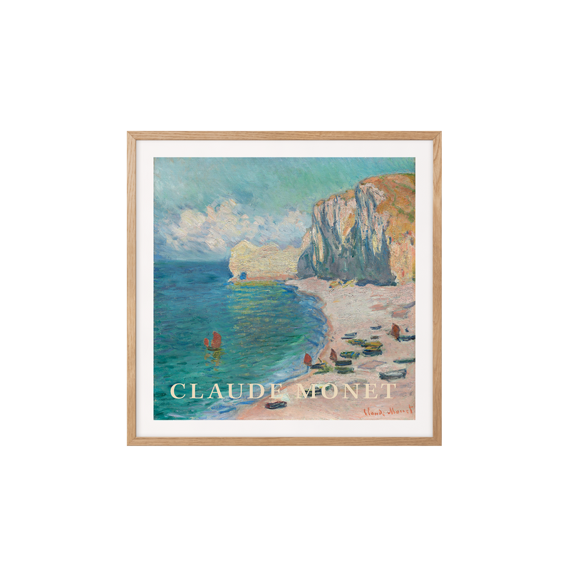 The art print: “The Beach and the Falaise d'Amont” by the artist Claude Monet is a painted artwork recreated as a poster by Peléton. This poster collection with Claude Monet's colorful art prints with light colors is characterized by his realistic and impressionistic style. This poster is part of Peléton's vintage collection with museum layout. The art print is produced on quality paper, with long durability, high opacity, and detailed color reproduction.
