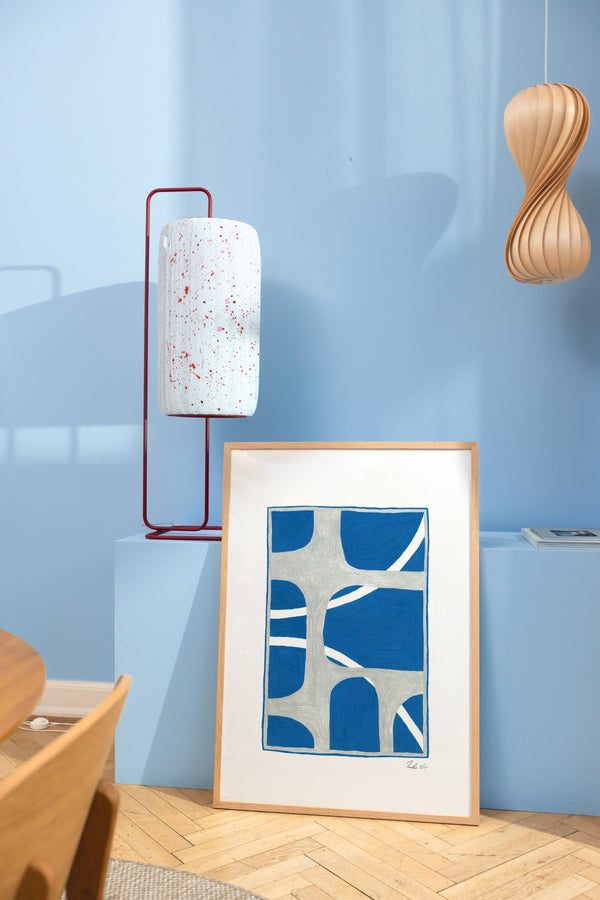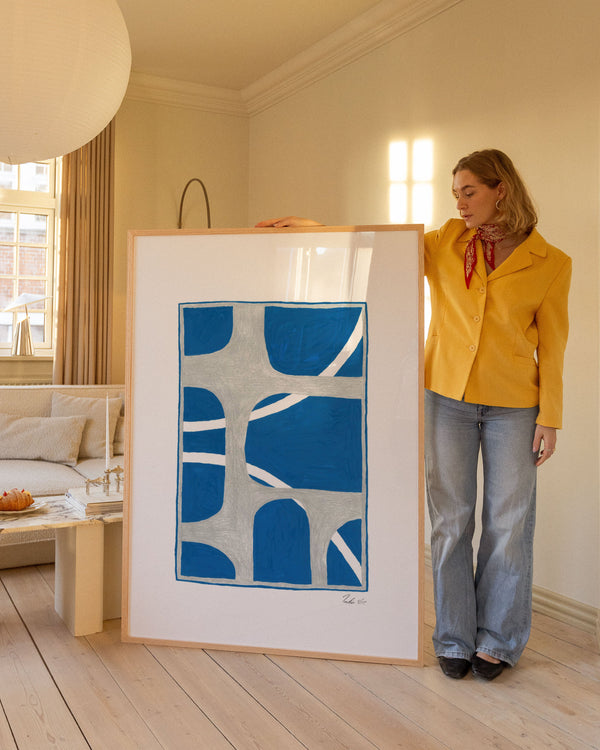 The art poster: “The Blue Field” by the artist Joachim Himmelstrup is an illustrated poster exclusively made for Peléton. It has been important for Joachim Himmelstrup that the poster is open to interpretation.