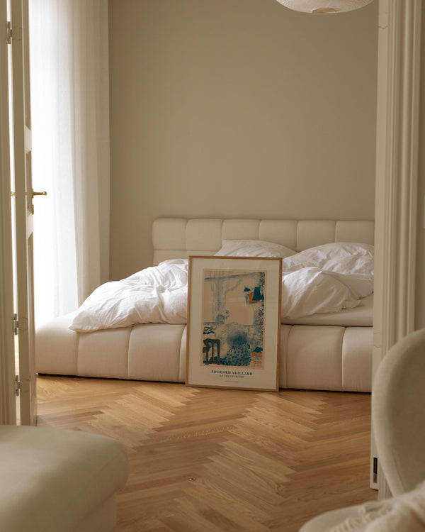 The Frames in oak are made of solid oak. The dark variant is stained to achieve a deep, warm tone, while the black Frame is made of black-painted pine with the same elegant profile.