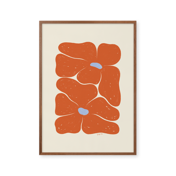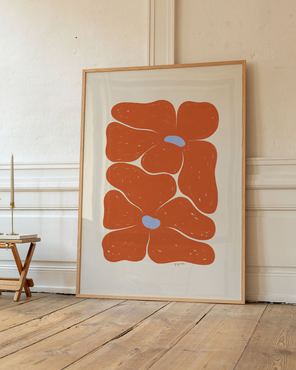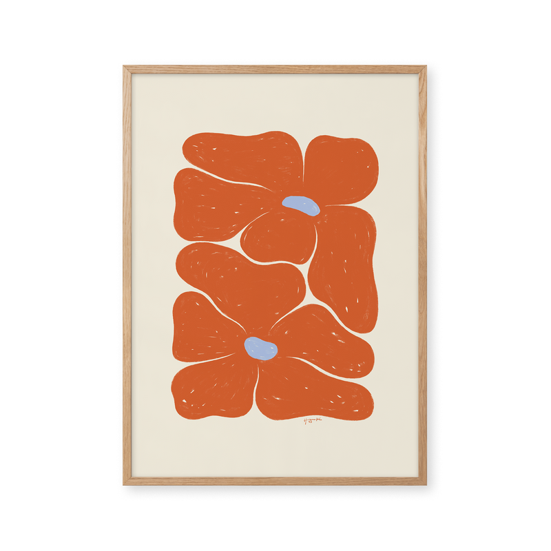 The art poster: “Thick Flowers” by the artist Hanna KL is a graphically illustrated poster curated by Peléton. It has been meaningful to her that the poster is open to interpretation.