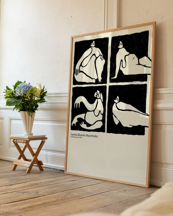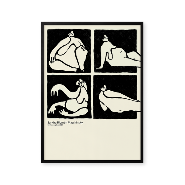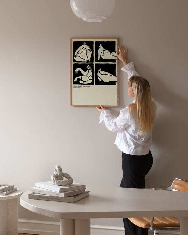 The art poster: “Unbothered” by artist Sandra Blomén Maschinsky is a graphic illustrated poster, exclusively made for Peléton. It has been significant for her that the poster is open to interpretation.